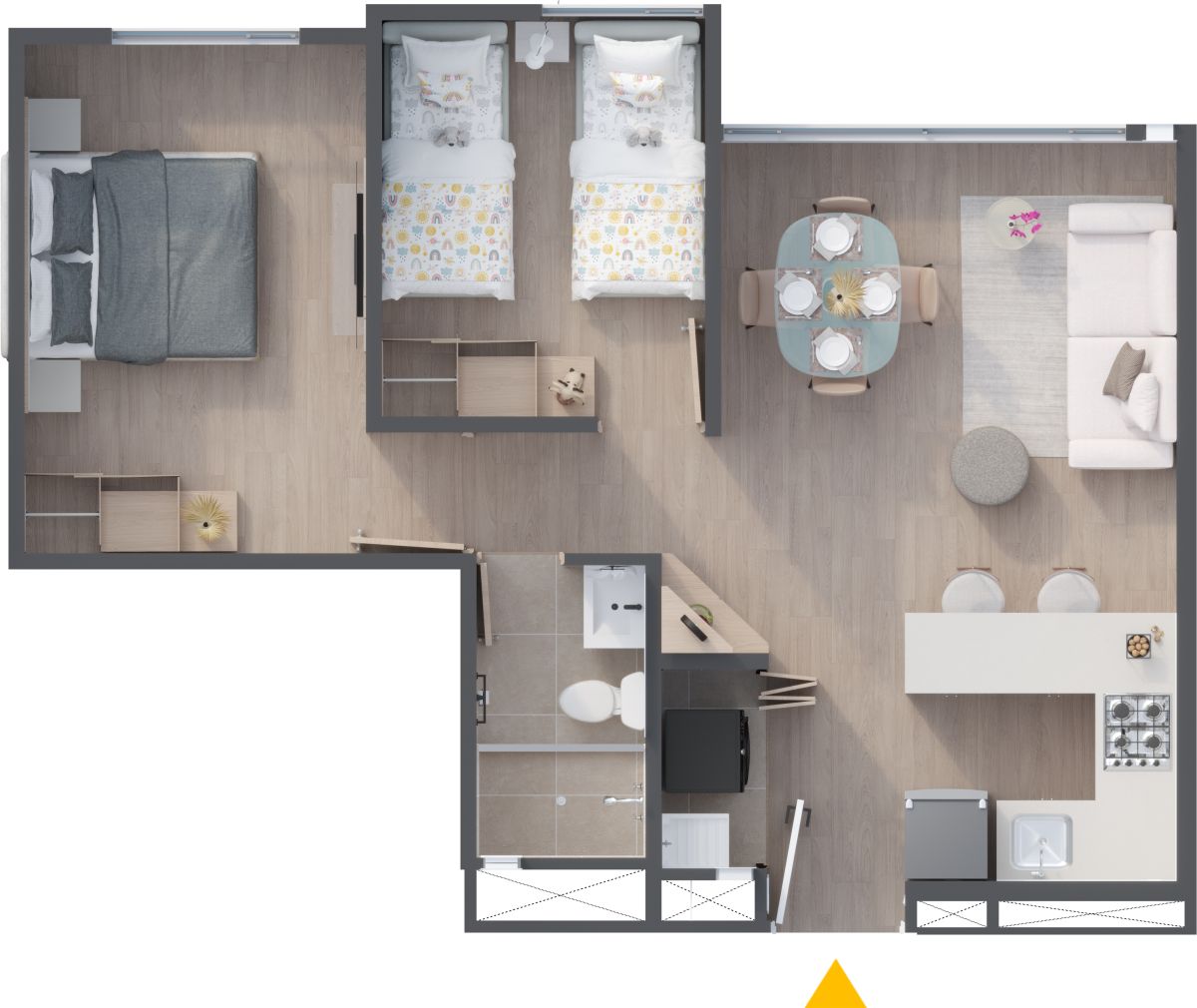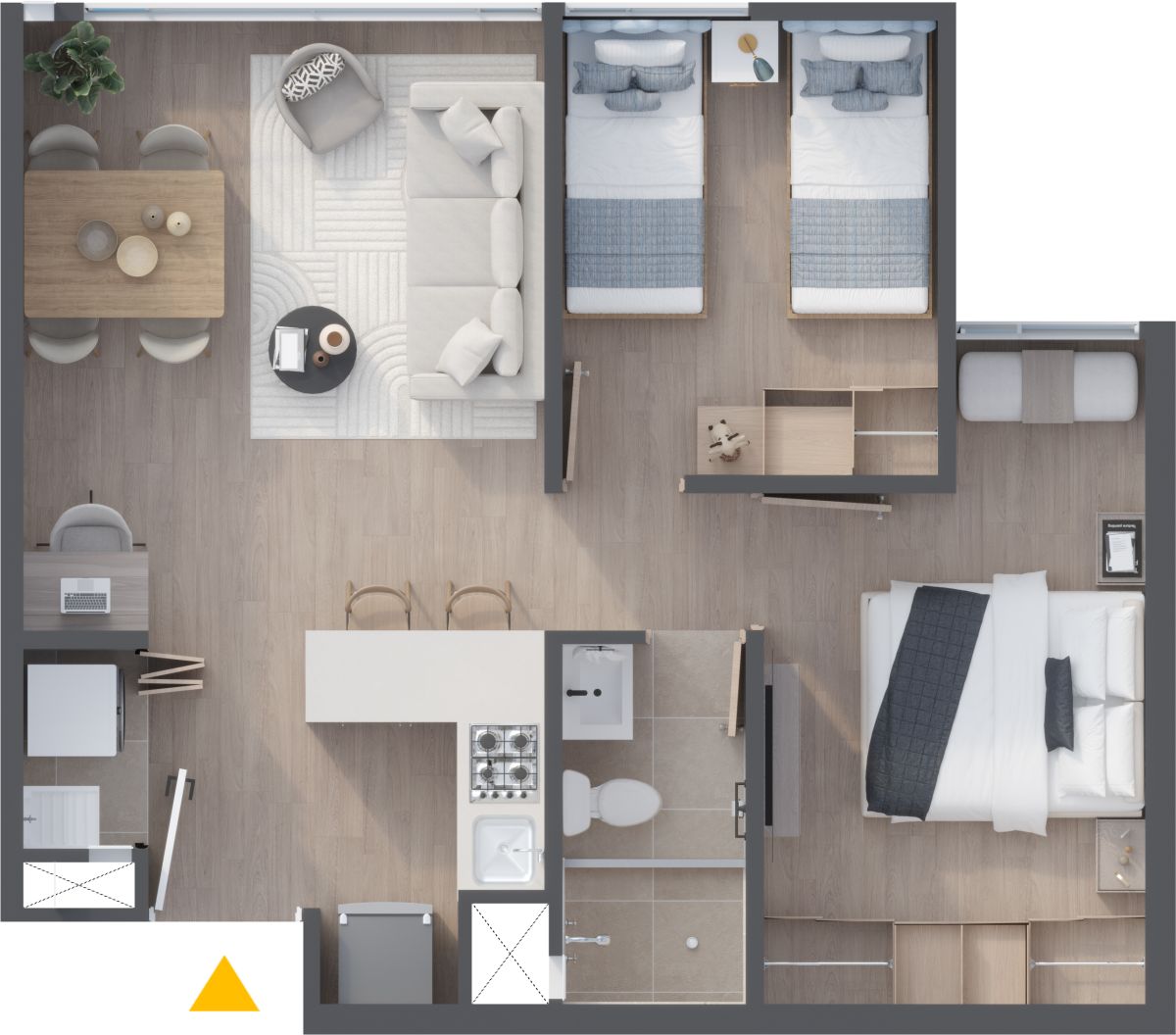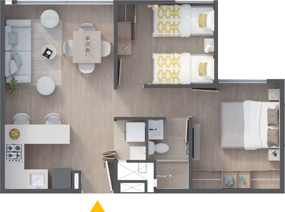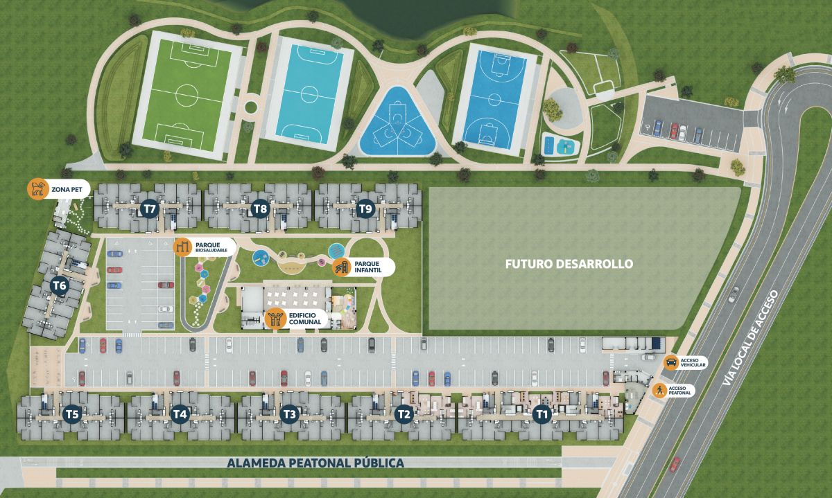 * El precio de venta está establecido en pesos colombianos, está sujeto a la disponibilidad de inventario y puede variar conforme al área, la ubicación y la política comercial vigente. Las áreas indicadas son aproximadas y pueden ser modificadas como consecuencia de ajustes técnicos, procesos constructivos, disposiciones de las autoridades competentes y/o entre otros. Las imágenes publicitarias, planos, renders y demás piezas gráficas constituyen representaciones ilustrativas del diseño y pueden diferir de la percepción y del resultado final de la construcción; por lo tanto, no generan obligación contractual ni constituyen oferta comercial por parte de la Constructora. El mobiliario, electrodomésticos, acabados, elementos decorativos, arborización y demás componentes mostrados en las imágenes del proyecto y los apartamentos modelo, son únicamente ejemplos orientados a ilustrar el uso de los espacios, que pueden diferir de los acabados y especificaciones finales. Para obtener información detallada sobre los precios, áreas, acabados, especificaciones y demás condiciones del Proyecto consulte con la sala de ventas.
